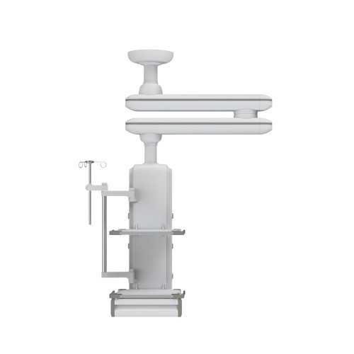 Підвісна система SK-PT003 із двома обертовими плечами забезпечує ширший радіус охоплення лікувальної зони, ніж одноплечові моделі, та дозволяє максимально гнучко позиціювати обладнання. Завдяки міцним матеріалам, великій вантажопідйомності та продуманому дизайну, ця система ідеально підходить для інтенсивної терапії, операційних та інших відділень, де важлива надійність, чистота та ефективність.Матеріали та технології:Дизайн конструкції: подвійна підвісна система з двома плечами економить простір на підлозі. Уся конструкція повністю герметична, не має гострих кутів, що знижує ризик травмування.Фарбування: використовується імпортований антибактеріальний пластиковий порошок, що наноситься методом електростатичного фарбування. Товщина шару - 0,12 мм, яскравість - 60°. Покриття витримує удари до 50 кг.Зварювання: виконується автоматичним роботом Panasonic, що забезпечує повне 360° рівномірне та естетичне з'єднання.Матеріали: каркас виготовлений з алюмінієвого сплаву з межею міцності понад 295 МПа. Деякі з'єднувальні елементи з чавуну міцністю ?200 МПа. Витримує навантаження понад 300 кг. Виріб виготовляється методом одноразового екструзійного формування з подальшою первинною оксидацією.Функціональність:Гальмівна система: пневматична система гальмування, що працює на стисненому повітрі. Один дотик і система зафіксована.Підвісна система: підвіс та обидві руки обертаються на 340° із вбудованим обмежувачем для запобігання мимовільному зсуву.Комплектація:Обертові плечі: два консольні плеча покривають радіус лікувальної зони до 1400 мм. Ідеальні для гнучкого розміщення медичного обладнання в будь-якому відділенні.Інфузійна стійка: довжина 600 мм, телескопічна. Оснащена чотирма гачками, кожен витримує навантаження до 4 кг.Шухляда: з безшумною напрямною, витримує понад 10 000 циклів відкривання-закривання. Ручка виготовлена методом пресового формування для зручності й довговічності.Платформа для інструментів: розмір: 450 ? 500 мм. Висота регулюється. Стільниця з алюмінієвого сплаву з внутрішнім сталевим каркасом, витримує ?50 кг. Зовнішня рама алюмінієва.Медичні гази: подача газів реалізована з обох боків - на колоні та тумбі. Конфігурація адаптується:Кількість точок подачі;Стандарти та розміщення розеток;Газові порти мають потрійний захист (увімкнено / вимкнено / витягнуто), дозволяють обслуговування без зупинки роботи.Розетка зрівнювання потенціалів: захищає від різниці потенціалів між різними металевими частинами для безпеки пацієнтів та персоналу.Переваги:Більший радіус покриття завдяки двом обертовим плечам;Міцна конструкція, що витримує щоденні навантаження;Використання антибактеріального порошкового покриття - гарантія стерильного середовища;Різноманіття аксесуарів - гнучке налаштування під потреби клініки;Висока адаптивність до будь-якого операційного чи реанімаційного середовища.Додаткові аксесуари (опційно):Сітчастий кошик з нержавіючої сталі;Розетки подачі медичних газів за стандартами: британський, американський, німецький, французький, японський;Адаптери: British, French, German, DISS, Ohmeda, Chemetron тощо;Інгалятори: одноразові, прості, зовнішнього кріплення;Регулювальні клапани негативного тиску;Зовнішній пристрій збору рідких відходів.